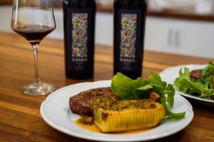 Mientras que en el hotel que está en la esquina de Sarmiento y Avenida Central, el mismo corte de carne llegará en el plato pero con un proceso de curado en Malbec, acompañado de milhojas frita de tubérculos, sobre salsa espejo a base del mismo vino. De postre un bavaroise aterciopelado –parecido a una mousse pero más consistente- de chocolate amargo y Malbec, con corazón de higos confitados, arena de naranja y salsa de ciruelas.